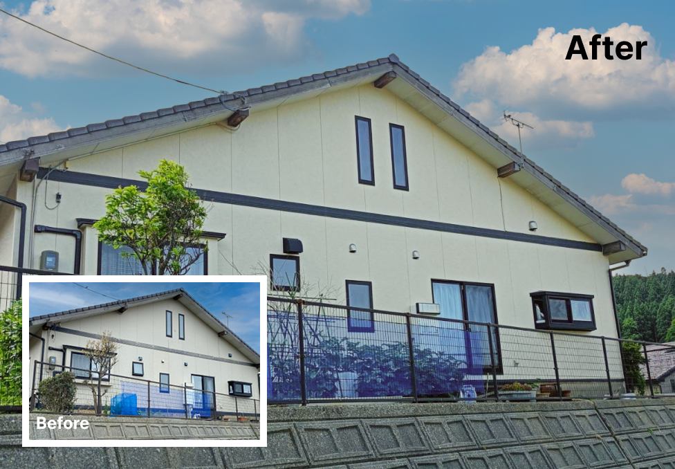 〇外壁張工事(1面・ニチハ窯業家釘留) 既存外壁撤去//長尺出隅取付/窯業系幕板取付/コーキング工事