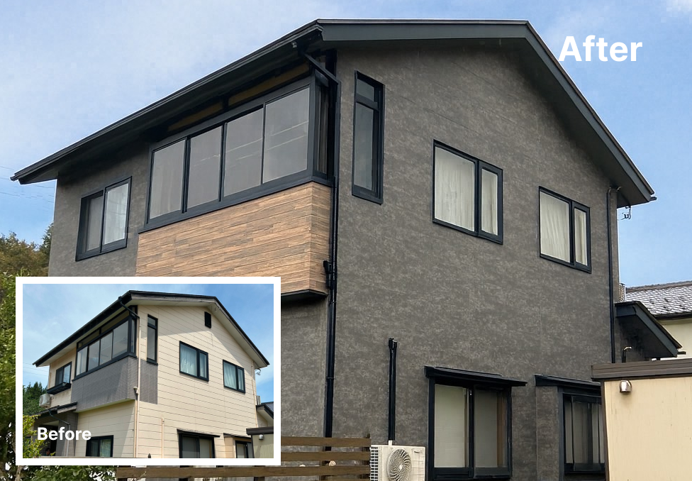 〇外壁張替工事(KMEW窯業SD金具留) 既存外壁・軒天解体/既存土台水切撤去、新設/窯業サイディング16ミリ横張り/長尺出隅取付/シーリング工事